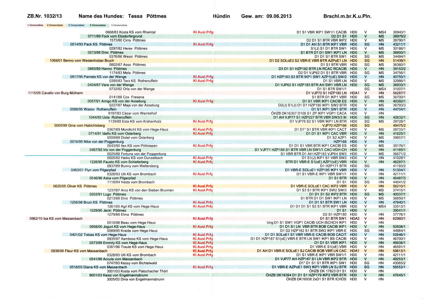 Name | Geschlecht | Farbe mit Abzeichen | Zuchtbuch Nr. |